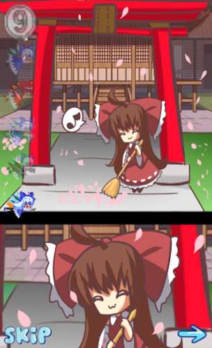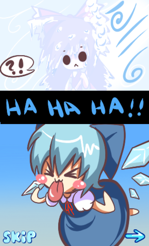 cirno to zase zpackalo!vtipkování na reimu zašlo příliš daleko a teď má potíže! pomozte cirnovi uniknout a odletět před reimuovým útokem. ujistěte se, že nenarazíte na sloupy svatyně, jinak budete zasaženi! jako další bonus bude někdy na sloupech svatyně sedět žába, kterou můžete zmrazit tak, že se jich dotknete, čímž získáte dalších 10 bodů za 9 mincí!