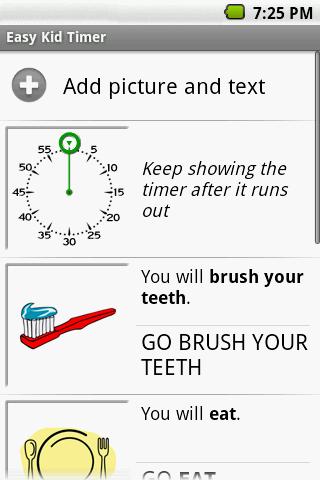 Snadný dětský časovač je zábavný vizuální časovač pro rodiče nebo učitele jakékoli trpělivosti učení dítěte a koncepce času. Skvělé pro děti s autismem: Time, které mohou děti „vidět“, je zásadní pro jejich pochopení času a trpělivosti. Stačí stisknout „Přidat“ v horní části seznamu obrázků. Můžete si vyfotografovat s telefonem nebo přidat obrázek z galerie.Důležité: Pokud máte nějaké dotazy, pošlete vývojáři nebo se zeptejte na Facebooku nebo Twitter. Nemáme žádný způsob, jak odpovídat na otázky zveřejněné jako komentáře na Android Market.