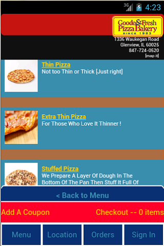 toto je aplikace pro Android pro pekárnu goode a čerstvou pizzu, která se nachází v glenview, il. použijte tuto aplikaci pro rychlé a snadné objednání vaší oblíbené pizzy. pro více informací nebo pro zobrazení plné verze naší online objednávkové stránky navštivte prosím naši webovou stránku www.goodenfresh.com.V Současné Době Nabízíme Verzi 2.1. Toto Je Naše Nejnovější, Nejvíce Optimalizovaná Verze. Je Vhodný Pro Mnoho Různých Zařízení. Zdarma Ke Stažení Přímo Apk Z Obchodu Google Play Nebo Jiných Verzí, Které Hostujeme. Kromě Toho Si Můžete Stáhnout Bez Registrace A Bez Nutnosti Přihlášení.
