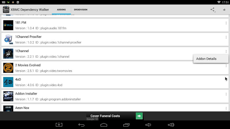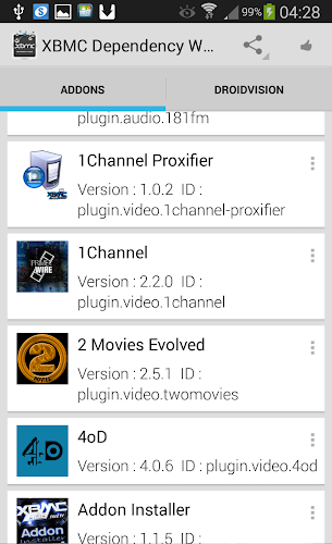 Analýza A Revize Aplikací Pro Android: XBMC Dependency Walker (Addon), Vyvinuté Společností droidvision. Uvedeno V Kategorii Nástroje. Aktuální Verze Je 2, Aktualizována Na 21/10/2017 . Podle Recenzí Uživatelů Na Google Play: XBMC Dependency Walker (Addon). Dosaženo Více Než 10 Tisíc Instalací. XBMC Dependency Walker (Addon) Má V Současné Době Recenze 40, Průměrné Hodnocení 3.7 Hvězd