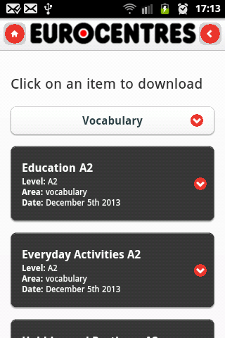 Pokud studujete angličtinu s účtem my.eurocentres, použijte tuto aplikaci na:- Stáhněte si a zkontrolujte seznamy slovní zásoby vytvořené ve třídě
