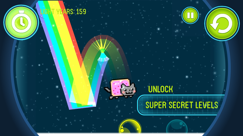 - zábava hrát tajné úrovně, představovat další výzvy, jako je soutěž Nyan Cat Jump Competition nebo Infinite Time Warp Supervel.