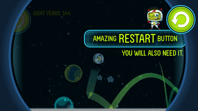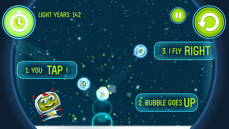 2. Klepněte na to, když je Hubble (malá kosmická loď) nad bublinou. Odrazují se, letíme.