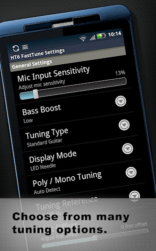 * Nastavitelný odkaz na ladění A440, A, A ♭, G, G ♭ F, E a 436 Hz až 445 Hz