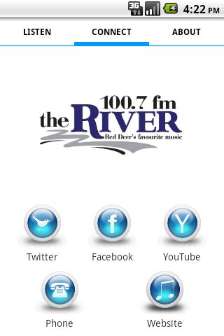 Connect to 100.7FM The River through Facebook, Twitter, and the website all from within the app!