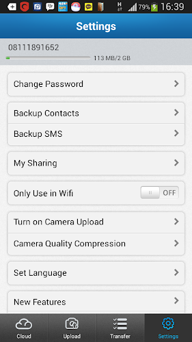 Uložte svá data bezpečně pomocí aplikace (osobní online úložiště). S touto aplikací můžete uložit fotografie, videa, SMS, kontakty na náš cloud computing server.