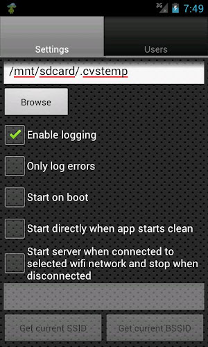 - for every cvs server you can set name, working directory, add users, enable logging, only log errors, start the server when connected to a specific wifi network and disconnect when the wifi network is lost, or start on boot