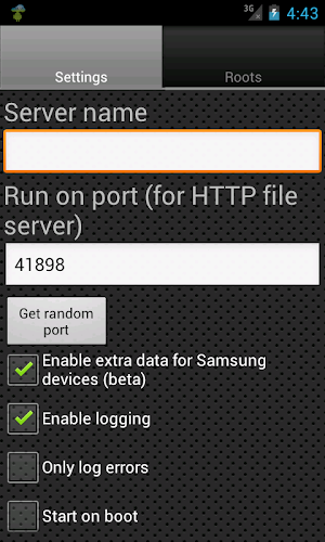 - add a upnp server, and set the following: name, port (for http files porce), povolte další data pro zařízení Samsung, povolte protokolování, pouze protokolové chyby, spusťte server, když je připojen k konkrétní síti WiFi, a odpojte, když se síť WiFi ztratí, nebo začněte na boot, přidejte více kořenů (složka bude sdílena)
