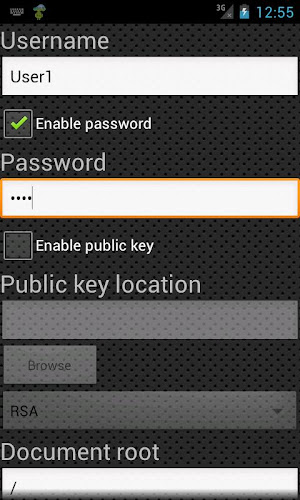 A complete SSHd, SFTP, SCP and Telnet server! From now on you can run a complete SSH daemon (server) with support for multiple users, public key authentication, and you can even set a directory per user for SFTP and SCP.NO ROOT is required, but if you do have a rooted device you can run SSH as super user if you want. The shell will only work on ARM devices, however, the SFTP and SCP servers will work on all devices.