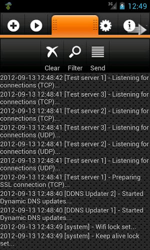 - Spusťte/zastavte testovací server Pro automaticky, když je připojen/odpojený od zadané sítě WiFi nebo na spuštění { #}- Verbose Log (filtr, e-mail atd.)