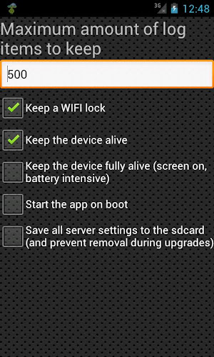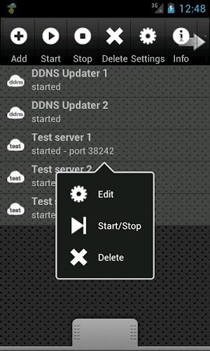 - Pro každý testovací server můžete nastavit název, port, pouze přístup z určitých IP adres, vibrujte na nové připojení, povolte protokolování, pouze chyby protokolu, spusťte server, když je připojen k konkrétní síti WiFi a odpojte, když se ztratí síť WiFi, začněte na boot, respawn při Crash, povolte SSL
