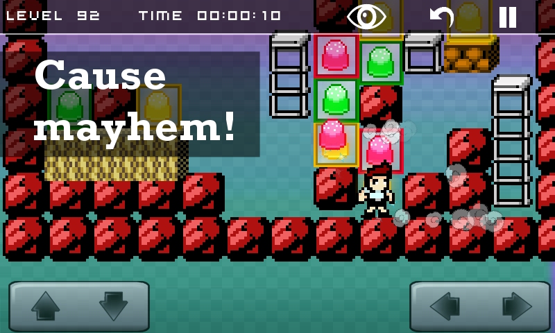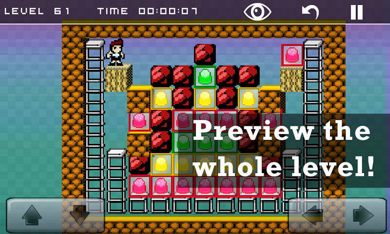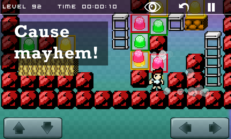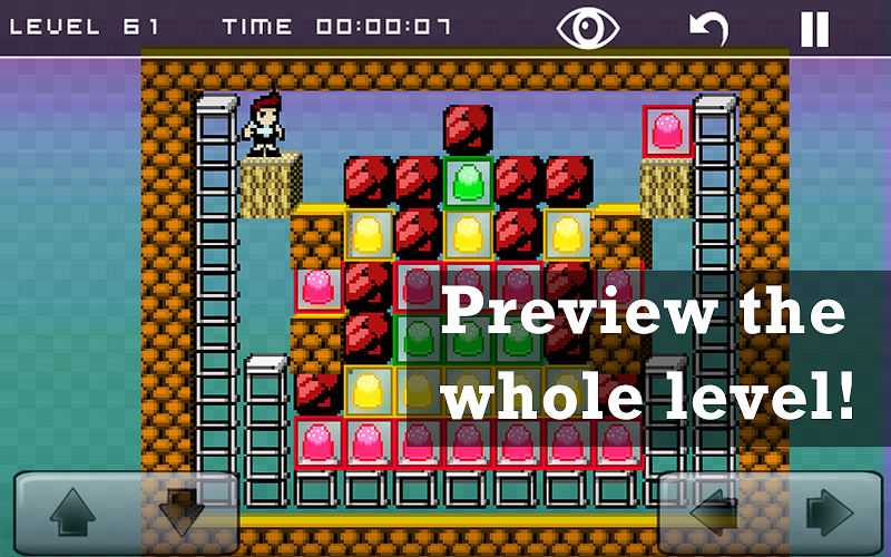 Shromažďovat všechny bonbóny v této platformě-hlavolam, a stát se králem cukroví!Cvičení váš mozek a zostřit svou mysl se snaží vyřešit všech 100 úrovní! Hra začíná jednoduše, ale na poslední úrovni, budete tahat vlasy se najít řešení!
