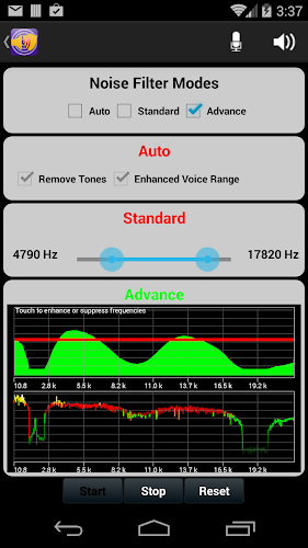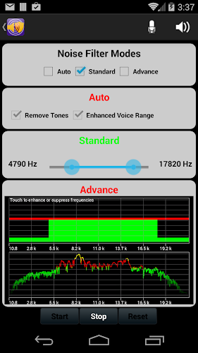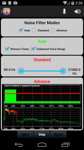 ☆ Podívej se na můj další bezplatné aplikace "Sonic Messenger". Aplikace zpráv, který využívá ultrazvukových komunikovat.Tato aplikace dělá audio zesílení nízkého zvukového signálu a šumu zrušení v reálném čase. Aplikace umožňuje obsluze navrhnout vlastní ideální filtry, jako je dolní propust, horní propust, pásmová propust a bandstop filtr kreslení na dotykové obrazovce. Musíte připojen headset (nebo sluchátka) do konektoru zařízení headset. To je požadavek, aby aplikace pracovat. Aplikace také umocní okolní prostředí a chovat se jako sluchadly stejně.