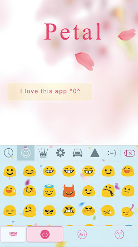 Petal Theme_emoji klávesnice je zábavná a kreativní aplikace klávesnice určená pro uživatele Androidu, kteří se rádi vyjadřují prostřednictvím emodži a jedinečných témat klávesnice. Tato aplikace obsahuje ohromující a barevné téma inspirované okvětní lístky s přizpůsobitelnými možnostmi, aby vaše klávesnice vypadala a cítila se personalizovaná. Díky rozsáhlé sbírce emodži, GIF, samolepek a emotikoniků tato aplikace klávesnice usnadňuje uživatelům přidávání osobnosti a postavy do svých zpráv. Ať už chatujete s přáteli nebo skládáte e -mail, petal Theme_emoji klávesnice poskytuje snadný a příjemný způsob, jak se vyjádřit prostřednictvím textu. Díky jednoduchému, ale intuitivnímu designu je tato aplikace ideální pro všechny věkové kategorie a úroveň dovedností. Vyzkoušejte klávesnici Petal Theme_emoji a přidejte do svého zážitku z zasílání zpráv další styl!