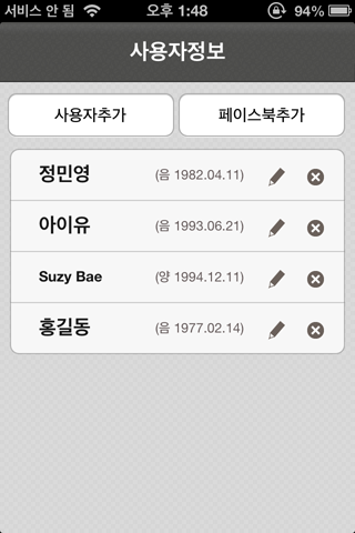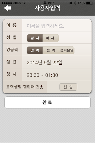 사용자등록을 통해 자신의 토정비결 뿐만 아니라 가족 친구들의 토정비결을 모두 볼 수 있습니다.