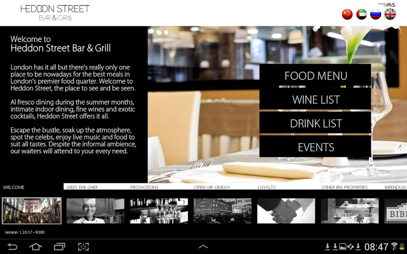 je ovládán z inteligentního systému správy obsahu, který mohou zaměstnanci snadno ovládat. Pro přehled úplného systému a toho, jak může fungovat ve vaší restauraci, nás prosím kontaktujte a my vás nasměrujeme na video produktu Iris F a B. To může trvat až 30 minut, v závislosti na rychlosti internetu a je to pouze jednorázový proces.
