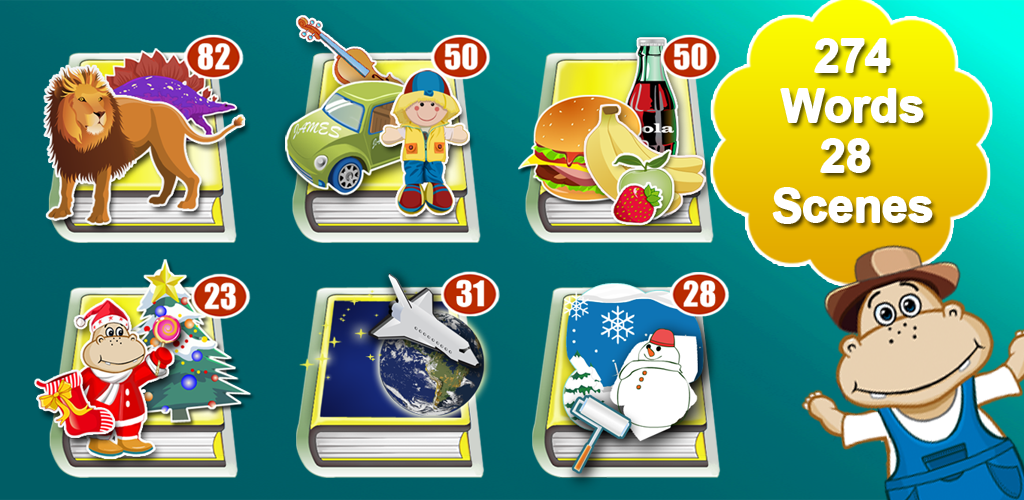 274 Slova: 82 Zvířata, 50 jídlo, 60 slov o životě, 23 slov o festivalech, 31 slov o astronomii a geografii, 28 slov o ostatních.28 Scény-8animal+4Food+7Life+3Festival+2map+4thers!