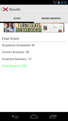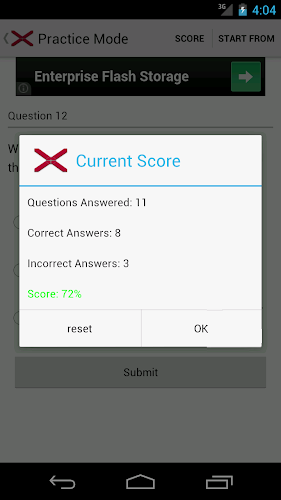 2. Režim zkoušky - načasován náhodně vybranými otázkami. Nakonec zkontrolujte své skóre a všechny nesprávné odpovědi.