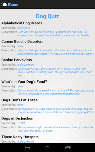 Analýza A Revize Aplikací Pro Android: Dog Quiz, Vyvinuté Společností quizworld. Uvedeno V Kategorii Vzdělávací. Aktuální Verze Je 1.63, Aktualizována Na 31/03/2014 . Podle Recenzí Uživatelů Na Google Play: Dog Quiz. Dosaženo Více Než 1,000 Instalací. Dog Quiz Má V Současné Době Recenze 40, Průměrné Hodnocení 4.2 Hvězd