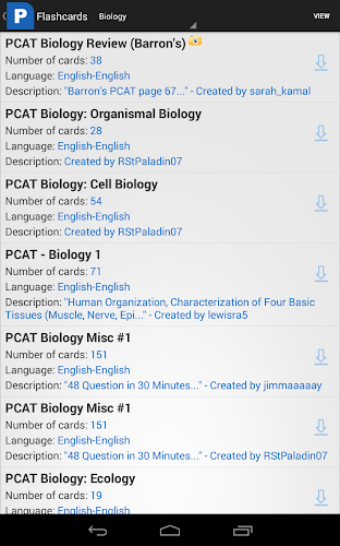 Naše aplikace obsahuje 5 dílčích testů v rámci testu pcat: verbální schopnosti, biologie, chemie, čtení s porozuměním, kvantitativní schopnosti