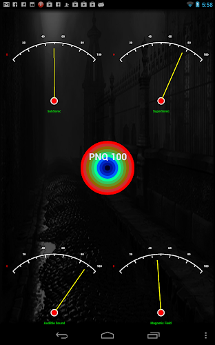 Android verze kapesního ducha paranormálního detektoru. Subsonic (infrasound), nadzvukové a zvukové filtry IIR vypočítají paranormální kvocient (PNQ) na vašem místě.Magnetické pole se také zobrazí. Zvířata, jejichž sluch je akutnější při vyšších frekvencích než naše, jsou schopna detekovat nadzvukové zvuky, obecně nad 12-15 kilohertzů. Například, o psi se uvádí, že se během nadpřirozených událostí chovají podivně. Zvuky velmi nízké frekvence, méně než sto Hertzů, se obvykle pociťují spíše než slyší lidé. Vestavěné mikrofonní obvody ve většině ručních zařízení jsou navrženy tak, aby detekovaly frekvence v rozsahu zvuku, ale existuje určitá zbytková odezva z obvodů na velmi nízké (subsonické) a velmi vysoké (nadzvukové) frekvence