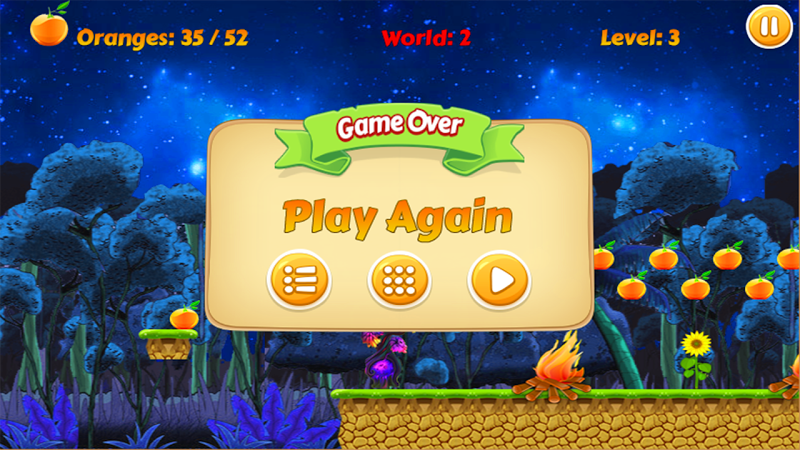 2. Sbírejte pomeranče co nejvíce, bez pádu ze země.