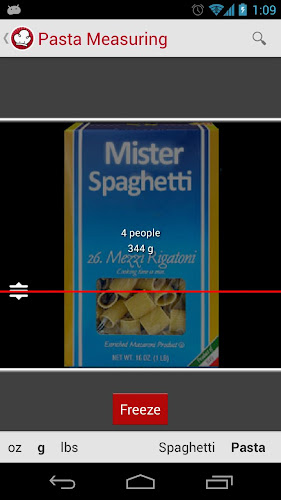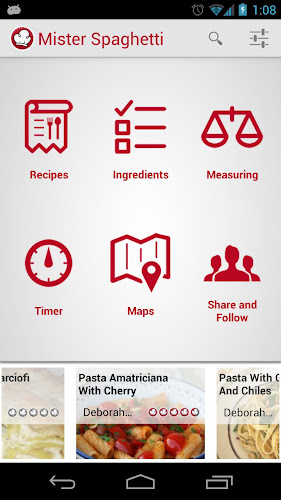 Počínaje dostupnými přísadami, Mister Spaghetti vám navrhne širokou škálu receptů. Díky inovativní technice měření (odlišné pro špagety a těstoviny) a vestavěnému časovači už nikdy nebudete přepočítat velikost těstovin a časy vaření! Použití senzoru blízkosti vám umožní deaktivovat alarm, aniž byste se museli dotýkat obrazovky, ale jednoduše přivést ruku do telefonu. Tímto způsobem uživatel bude moci aplikaci použít kdykoli bez spuštění rizika obrazovky znečištění.