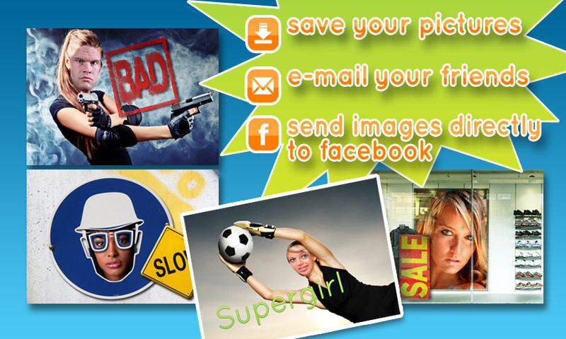 ★★★ špičková aplikace pro zábavu s fotografiemi ★★★dodejte obrázkům děsivý nádech tím, že přeměníte předmět na draculu, kostru, vězně nebo žraloka. proměňte sebe nebo svého kamaráda ve lva, orangutana, veverku, prase, koalu, bílou kočku, budoucího hrdinu nebo sochu svobody. objevit se na vánočním míči, sportovním autě, na plátně kina, na billboardech umístěných ve výloze, na ulici nebo se stát součástí pop-artového obrazu na zdi. vyměňte si obličej s obličejem starověkého válečníka, kovboje, zabijácké dívky nebo kulturisty. staňte se jednou z nejvíce potištěných tváří světa tím, že změníte svou tvář pomocí george washingtona nebo grantu na dolarové bankovky.