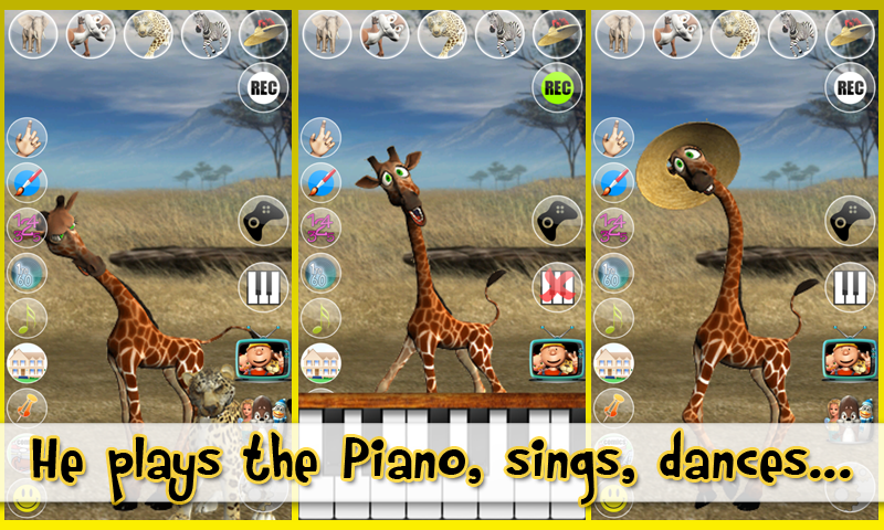 Promluvte si s Georgem The Giraffe. Odpovídá svým vtipným hlasem a reaguje na to, co říkáte nebo na svůj dotek.George je nemotorná žirafa, která žije v africké savaně se spoustou dalších zvířat. Objevte více o jeho osobnosti a jejích sousedech. Prochází kolem spousta zvířat, jako je stádo zebrů, divoký jaguar, obrovský slon, rychlá antilopa atd. 3D Graphics