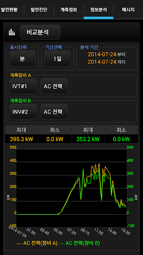 확인할 수 있으며 지난 발전 데이터를 조회할 수 있습니다.