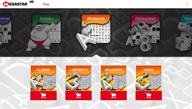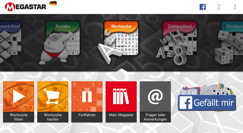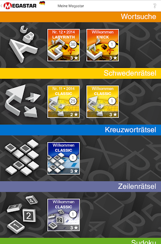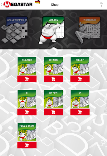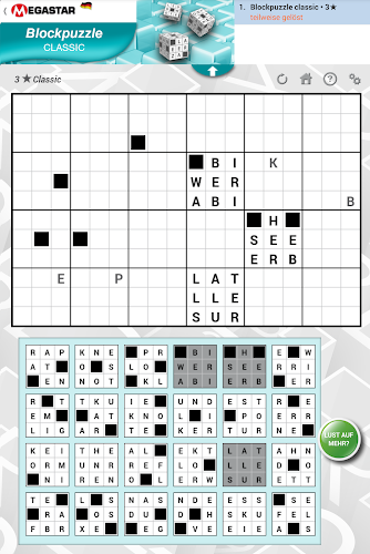 Hledáte všestrannou zábavu digitální puzzle? Nevypadejte dále. Kompaktní aplikace Megastar nabízí rozmanitou škálu mnoha populárních typů puzzle, jako jsou sudoku, vyhledávání slov, švédská hádanka, křížovka, Casserad, číselná puzzle a bloková puzzle.Naše varianty Riddle lze hrát dokonale na tabletu. Ať už hledáte zábavu, která by mohla překlenout čekací doby nebo udělat něco pro vaše šedé buňky prasknutím složitých ořechů hlavy: aplikace Megastar Puzzle nabízí pro všechny správnou věc. Užijte si vzrušující zábavu a zároveň trénujte svou paměť a logické myšlení. Různé hádanky jsou k dispozici v několika úrovních obtížnosti, takže není zaručena žádná nuda!