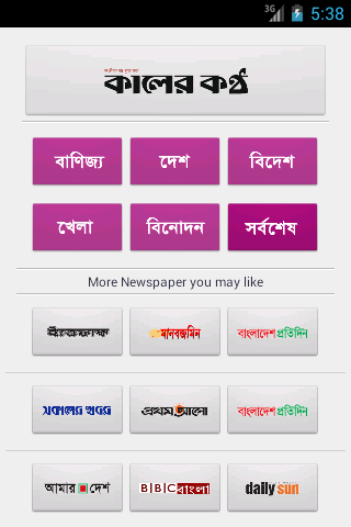 Kaler Kantho je nejnovější, ale široce přijímaný noviny v Bangladéši. Pokud si chcete přečíst noviny Kalera Kantho Bangla spolu s dalšími běžnými novinami (Prothom Alo, BdNews24, Bd Pratidin, Kaler Kantho, Ittefaq, Manabzamin), která se vám může líbit. Pouze 507 kb.* a je velmi snadné se použít.