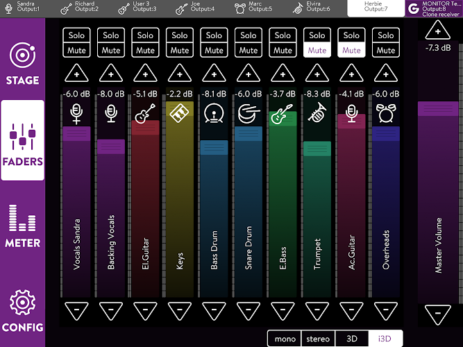 The KLANG:app is the control center of our KLANG:fabrik. It enables you to control your own individual 3D In-Ear mix the way you need it. Put instruments exactly where you want to hear them and adapt what you see with what you hear. Use the app with simple swipe gestures that were developed to be used while performing live on stage. We worked hard to make this app as intuitive as possible.To use this app you need a KLANG:fabrik.