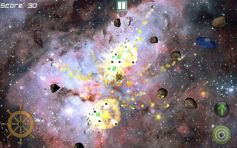 - nuke: Klepnutím na svou loď zničí všechny skály a zaadiq kolem vaší polohy. Tyto asteroidy mají na nich ikonu „varování“ (zelená, kde jsou daleko od herního plánu, červené, když jsou k němu blízko. Můžete ničit pouze asteroidy bez varovného znaménka