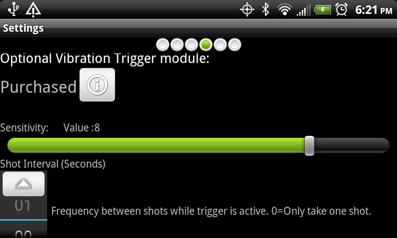 vibrační spoušť – pořiďte snímky, kdykoli váš telefon zaznamená vibrace nad určitou hodnotu.