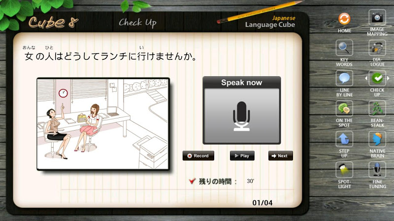 Tato aplikace je poskytována zdarma pouze studentům, kteří se zaregistrovali do kurzu japonštiny Credu's Language Cube.[credu Japanese Speaking]