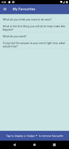 Tato aplikace se snaží vyvážit obsah a poskytuje stručný přehled koučovacích dovedností, modelů koučování a otázek, které si v rámci těchto modelů můžete vybrat. Kde se tato aplikace liší, je to, že také poskytuje zdůvodnění otázek a kde, kdy a proč byste mohli položit tuto konkrétní otázku.