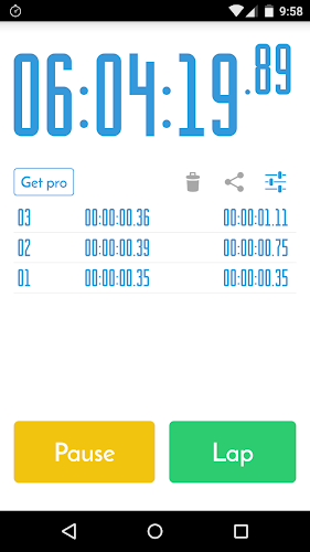 -Triggering Dotykem, ne klikněte na: Na skladě a některých dalších stopky aplikace, start / kolo / pauza se spustí po kliknutí, což znamená, že doba se zaznamenává, když váš prst opustí obrazovku. To způsobuje určité zpoždění. Stopky Re, když váš prst se dotýká obrazovky, start / kolo / pauza padáka.