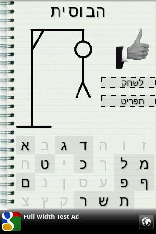 האיש התלוי: משחק מצחיק. נחשו את המילה סוד עברית. עם 3 רמות קושי.בחר את אותיות האלפבית ונחשו את המילה סוד. אבל אתה חייב לעשות את זה לפני האיש נתלה!