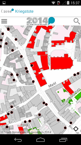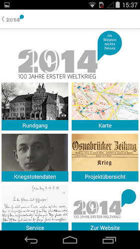 Aplikace Osnabrück 1914-1918 je vzrušující multimediální cesta přes Osnabrück v době první světové války. Trasa s 12 různými stanicemi umožňuje uživateli zažít příkladným způsobem to, co se stalo v Osnabrücku v době první světové války, a vypráví příběh 29 obyvatel Osnabrücku, kteří v této válce přišli o život jako vojáci.Funkce na první pohled: