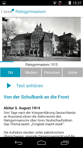 Analýza A Revize Aplikací Pro Android: Osnabrück 1914 - 1918, Vyvinuté Společností Stadt Osnabrück. Uvedeno V Kategorii Vzdělávání. Aktuální Verze Je 1.0.2, Aktualizována Na 21/07/2014 . Podle Recenzí Uživatelů Na Google Play: Osnabrück 1914 - 1918. Dosaženo Více Než 1,000 Instalací. Osnabrück 1914 - 1918 Má V Současné Době Recenze 14, Průměrné Hodnocení 4.1 Hvězd