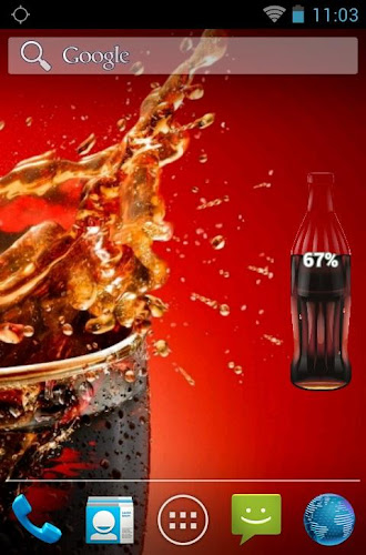 pěkně vypadající widget cola baterie pro váš telefon. umístěte láhev chutného nápoje na domovskou obrazovku.ať vám připomene lahodnou chuť vašeho oblíbeného nápoje.