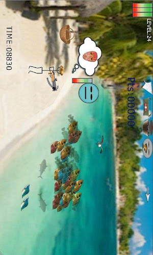 48 levels of play in 4 unique and colorful island locations. Touch any target to shoot! Fun arcade entertainment. Stickman shoots fish, collects them with the dragline, deposits fish in fish basket, eats fish to gain energy, throws bait to attract fish closer to shore, and changes arrows to shoot new wildlife.