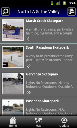 This app is for geo-locating all the parks in and around Southern California from north of Los Angeles to the Mexico border in San Diego. It was up to date on 4/16/2013. 150 skateparks!!! Pictures of all of them. Some parks have videos included.All the content is off line so that it is possible to access information even when connectivity is not available.