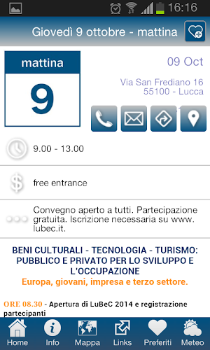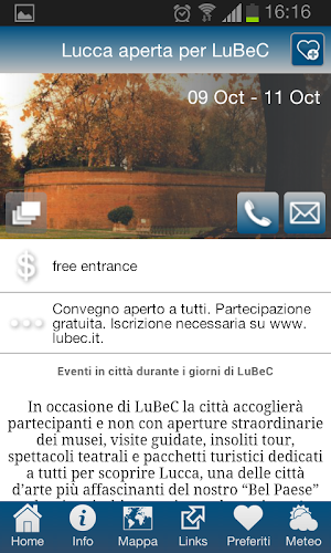 toto je oficiální průvodce Lubec. lubec je akce pořádaná promo pa, italskou výzkumnou nadací působící v oblasti vzdělávání a kulturního dědictví. lubec digital technology je výstava technologických řešení zpřístupněných v oblasti kulturního dědictví, jejímž cílem je zvýšit její hodnotu a propagovat místní území prostřednictvím diskusí o zcela nových tématech a projektech každý rok.Hlavní funkce této aplikace jsou: