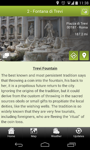 tato aplikace popisuje víkend v Římě se třemi trasami. vám umožní navštívit hlavní atrakce Říma. v zajímavostech najdete jednotlivé atrakce doplněné fotografiemi pořízenými autorem. tato aplikace byla vytvořena pomocí publikační platformy map2app. map2app je bezplatná služba založená na webovém nástroji, která umožňuje komukoli vytvořit průvodce mobilním průvodcem pro zařízení iPhone, Android a j2me. můžete přistupovat k map2app www.map2app.com. obsah aplikace je zcela offline, takže je možné přistupovat k informacím i v případě nedostupnosti konektivity. hlavní funkce této aplikace jsou: - organizovaný do kategorií cestovní průvodce - fotogalerie každého bodu zájmu - mapa umístění a pokyny pro každý bod zájmu - možnost zobrazení více než jedné kategorie na mapě - zobrazení vzdálenosti každého bodu zájmu - možnost ukládat body zájmu do sekce oblíbených - interní vyhledávač.V Současné Době Nabízíme Verzi v0.96b407726. Toto Je Naše Nejnovější, Nejvíce Optimalizovaná Verze. Je Vhodný Pro Mnoho Různých Zařízení. Zdarma Ke Stažení Přímo Apk Z Obchodu Google Play Nebo Jiných Verzí, Které Hostujeme. Kromě Toho Si Můžete Stáhnout Bez Registrace A Bez Nutnosti Přihlášení.