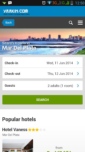 najděte hotely v Mar del Plata s nejlepšími cenami za více než 450 000 hotelů po celém světě. použijte aplikaci pro srovnání hotelů mar del plata k porovnání cen ze stovek jiných cestovatelských stránek (expedia, hotels.com atd.) jedním vyhledáváním. díky používání aplikace není třeba trávit hodiny hledáním a porovnáváním cen na různých webech a cestovních aplikacích. okamžitě porovnáváme nabídky hotelů ze stovek renomovaných cestovatelských stránek – včetně expedia, tiket.com, hotelclub, hotels.com, lastminute.com, venere.com, easytobook.com, získat pokoj a mnoho dalšího.funkce produktu