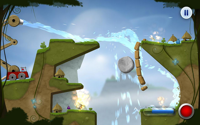 blokuje, balvany a ozubené ohesy, oh, použijte sílu vašeho vodního dělu k přesunu bloků ledu a balvanů, spin giant giant cogs a depresivní pasti, aby se dosáhlo a uhasilo každý poslední oheň.