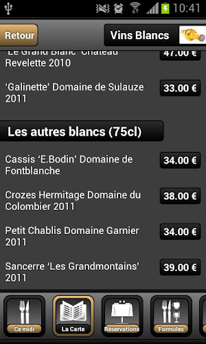 Vous y retrouverez tout ce que j'aimerais trouvé quand je vais au restaurant et des vins que j'aime boire.