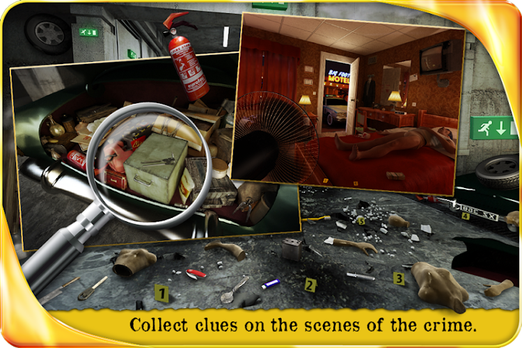Pečlivě prozkoumejte různé scény zločinu: pochmurná ulička, podzemní autoráz, dobře, hotelovou místnost atd. thriller!